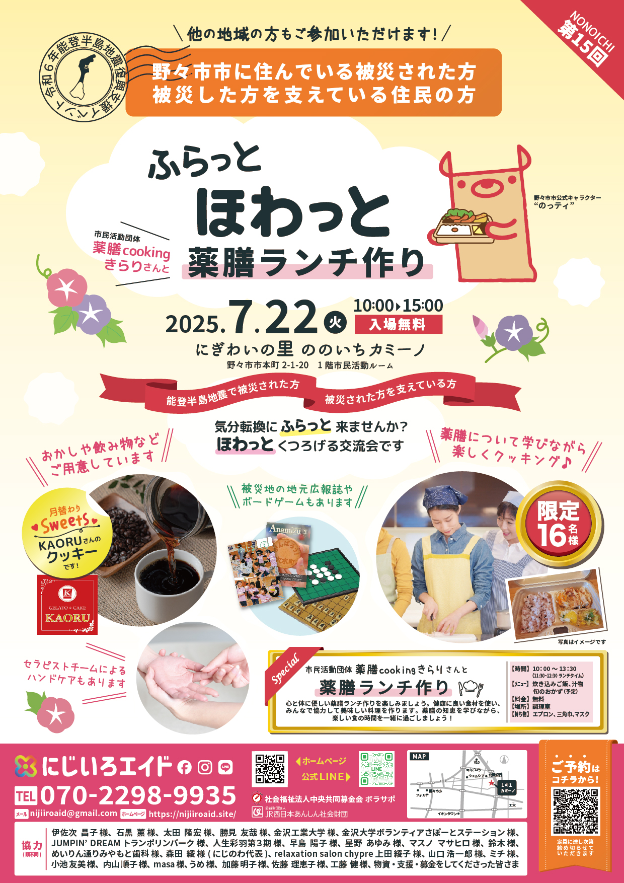 あまり取り沙汰されていないのですが震災による関連死者数も増えており、私たちはここ野々市市で、できる限り被災者・支援者に寄り添って行こうと思います。