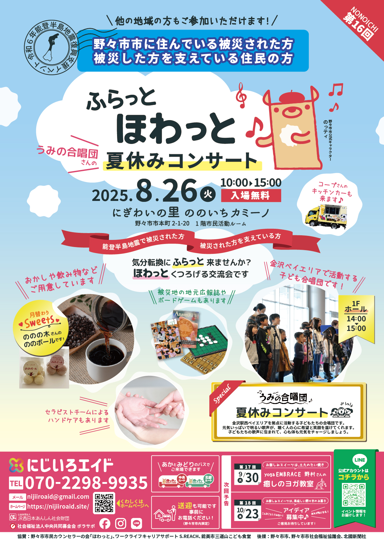 こんにちは、にじいろエイドです。本日「第3回ふらっとほわっとしませんか?」を開催しました!